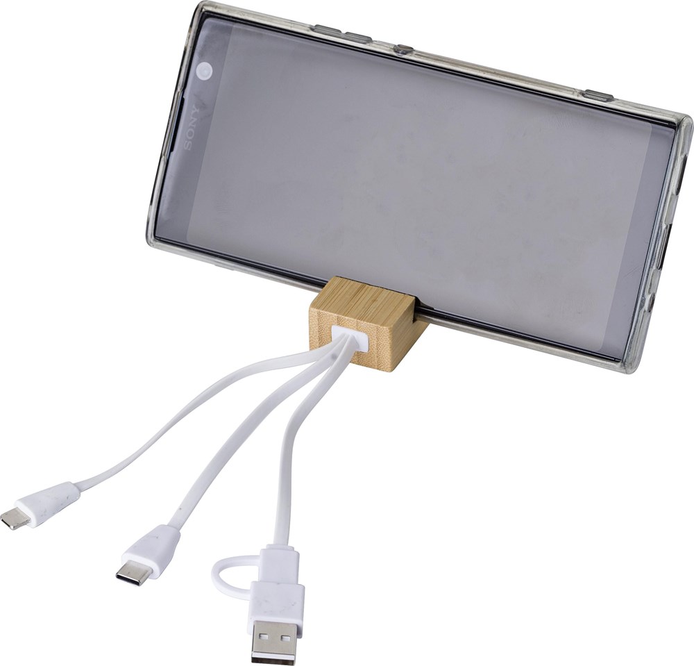 Schlüsselanhänger aus Bambus mit Ladekabeln. Typ-C, Lightning und USB-A/C. Einzeln verpackt in... mehr