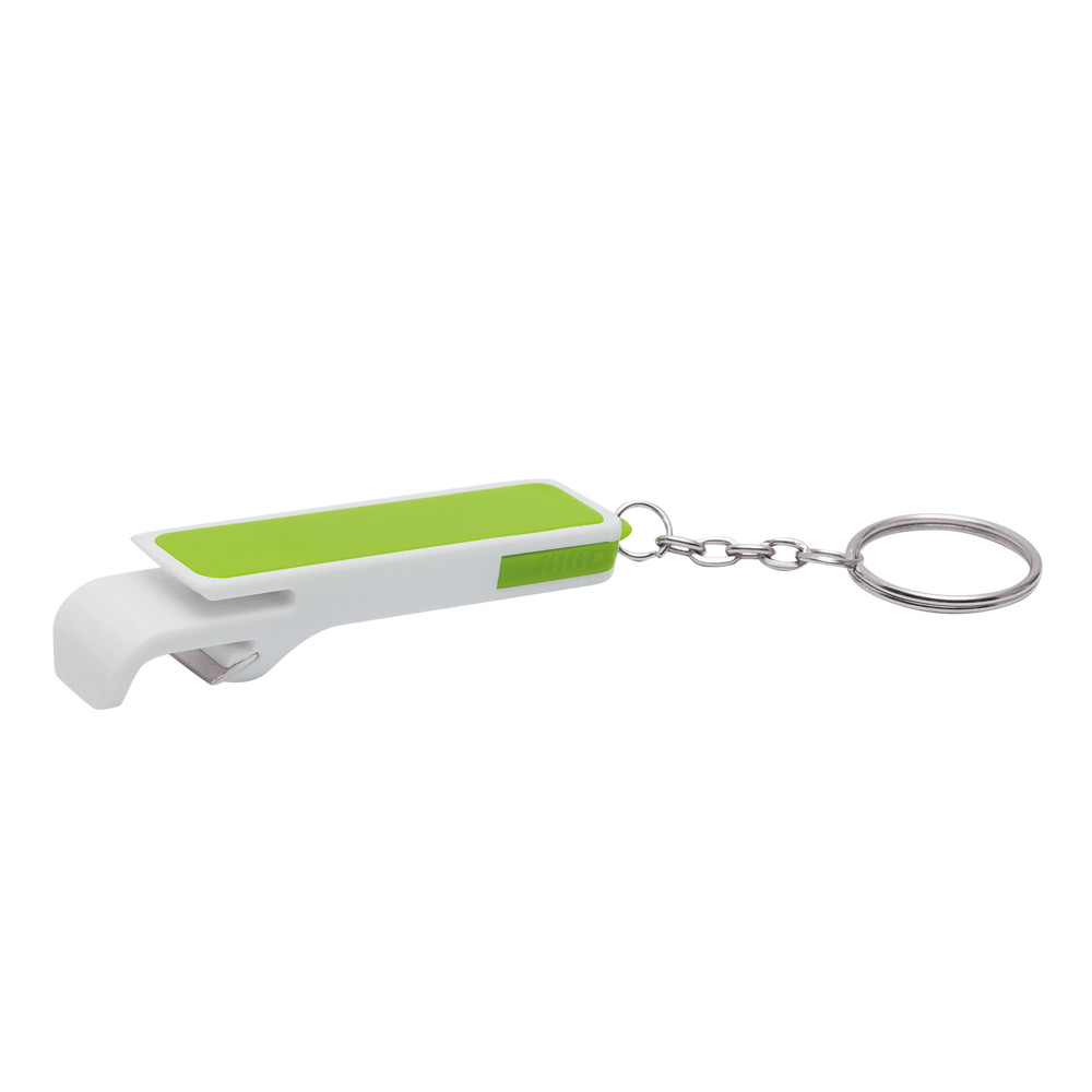 Schlüsselanhänger DOUBLE OPEN: mit ausziehbarem Halter für ein Smartphone, integriertem Flaschenöffner und Schlüsselring