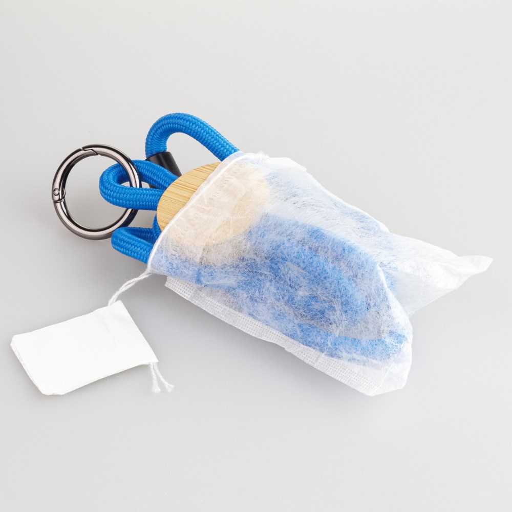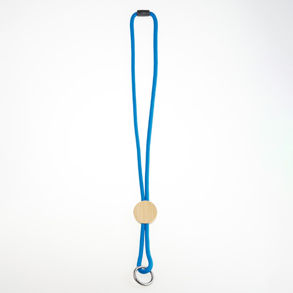 Nachhaltiges Lanyard aus recyceltem PET mit Bambus-Slider. Ideal für Events und Werbeaktionen. Gravurfähiger Holz-Slider und Schlüsselring aus Metall. In vier Farben verfügbar oder individuell nach PANTONE®.