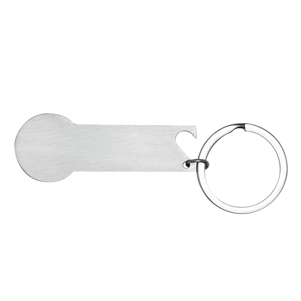 Einkaufswagenlöser NO COIN: basierend auf der Größe von einem 1-Euro-Stück, mit integriertem Flaschenöffner und Schlüsselring