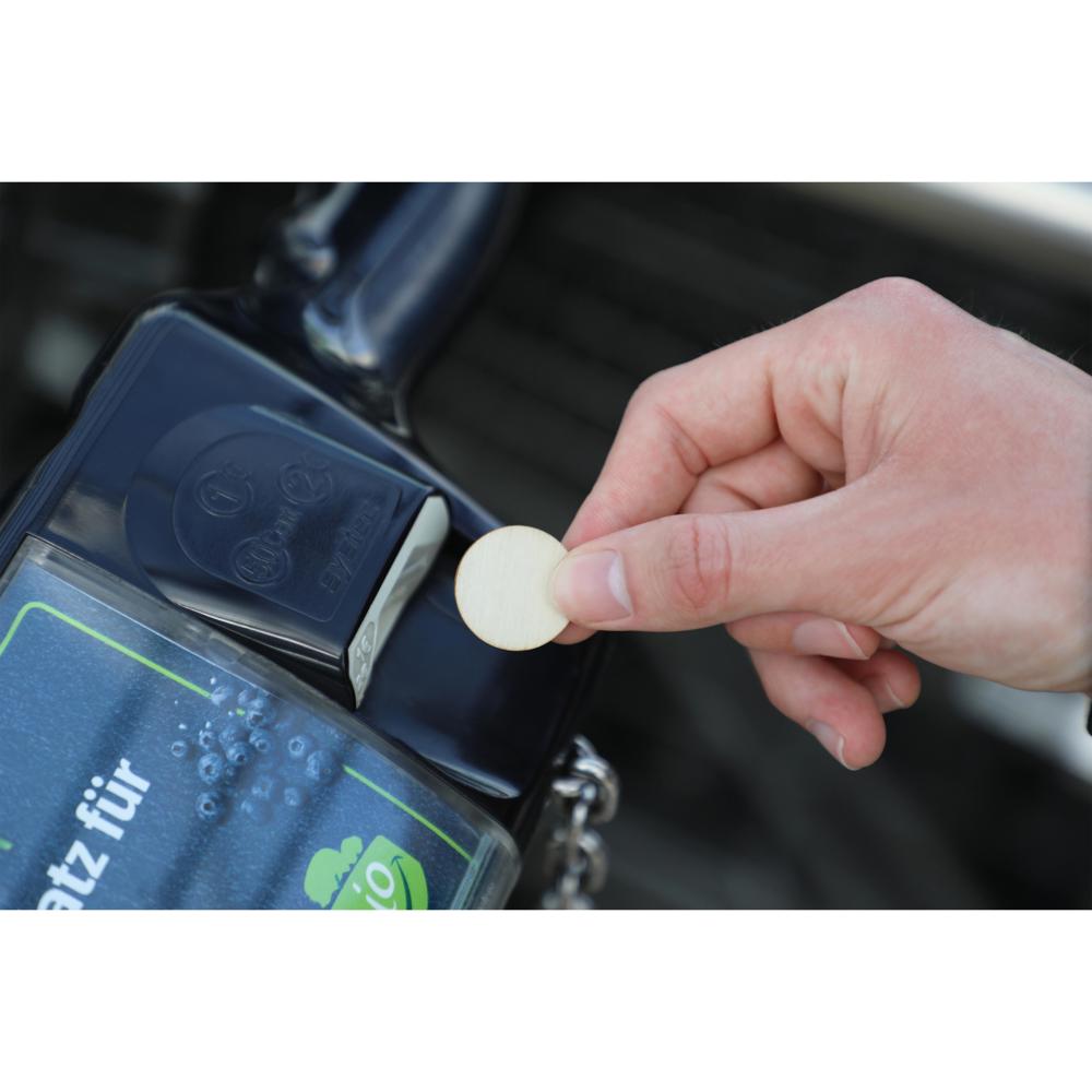Ökologische Einkaufswagenchips. Natürliche Chips aus Schichtholz. Stärke ca. 2mm. mehr