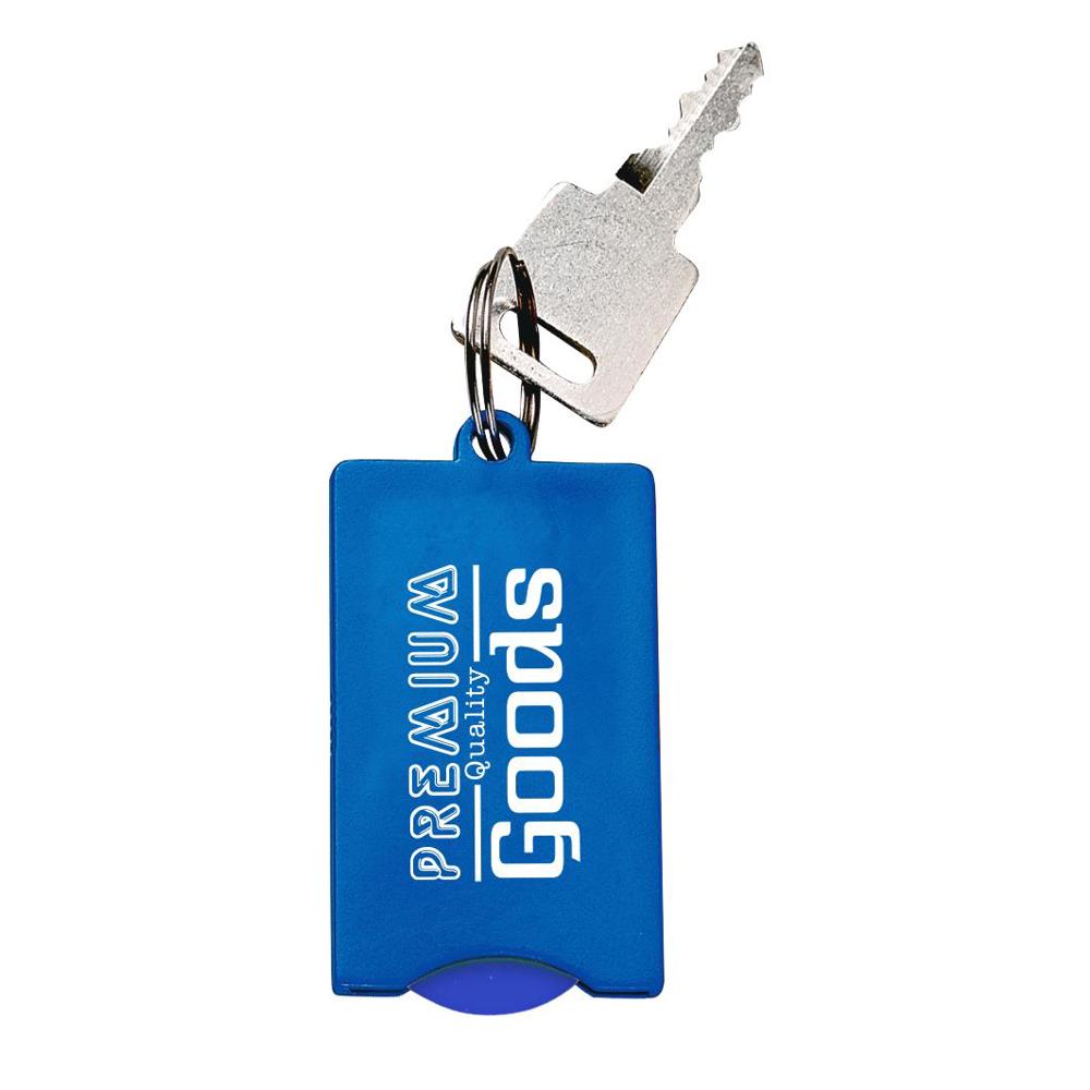 Der Extra-Flache. Rechteckiger Anhänger mit Fach für einen Einkaufswagenchip, in vielen Farben... mehr